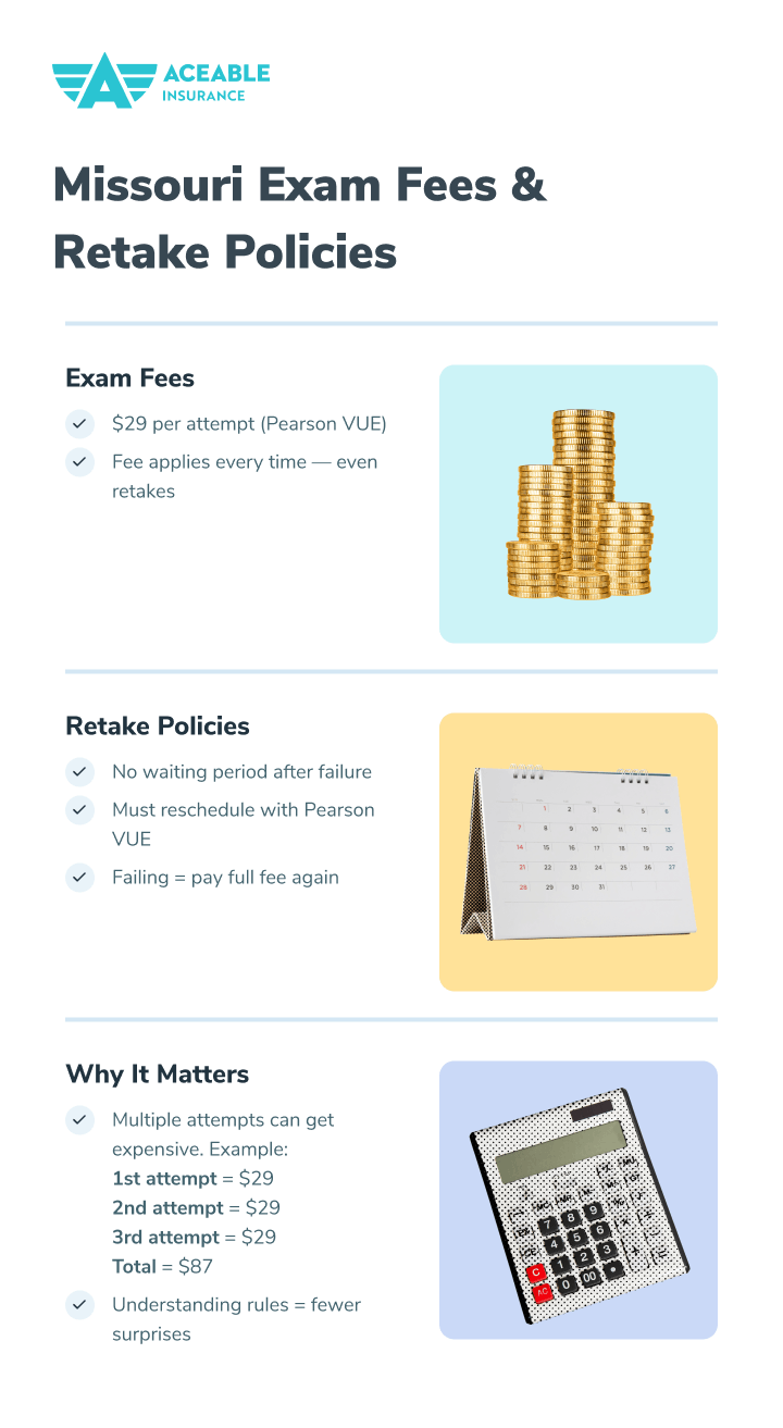 One of the most student-friendly aspects of Missouri's licensing system is the retake policy. There are no limitations on retaking the exam. This unlimited retake policy means you can continue attempting the exam until you pass, which provides peace of mind for test-takers who may need multiple attempts.